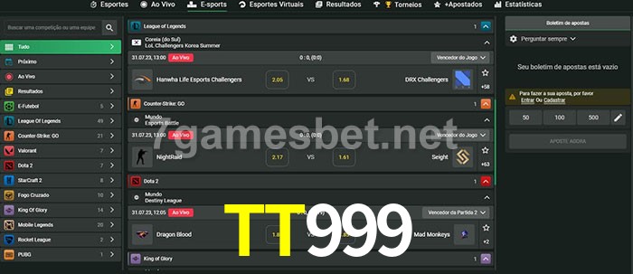 A aposta TT999 oferece aos jogadores a experiência mais conveniente de apostas em eSports!